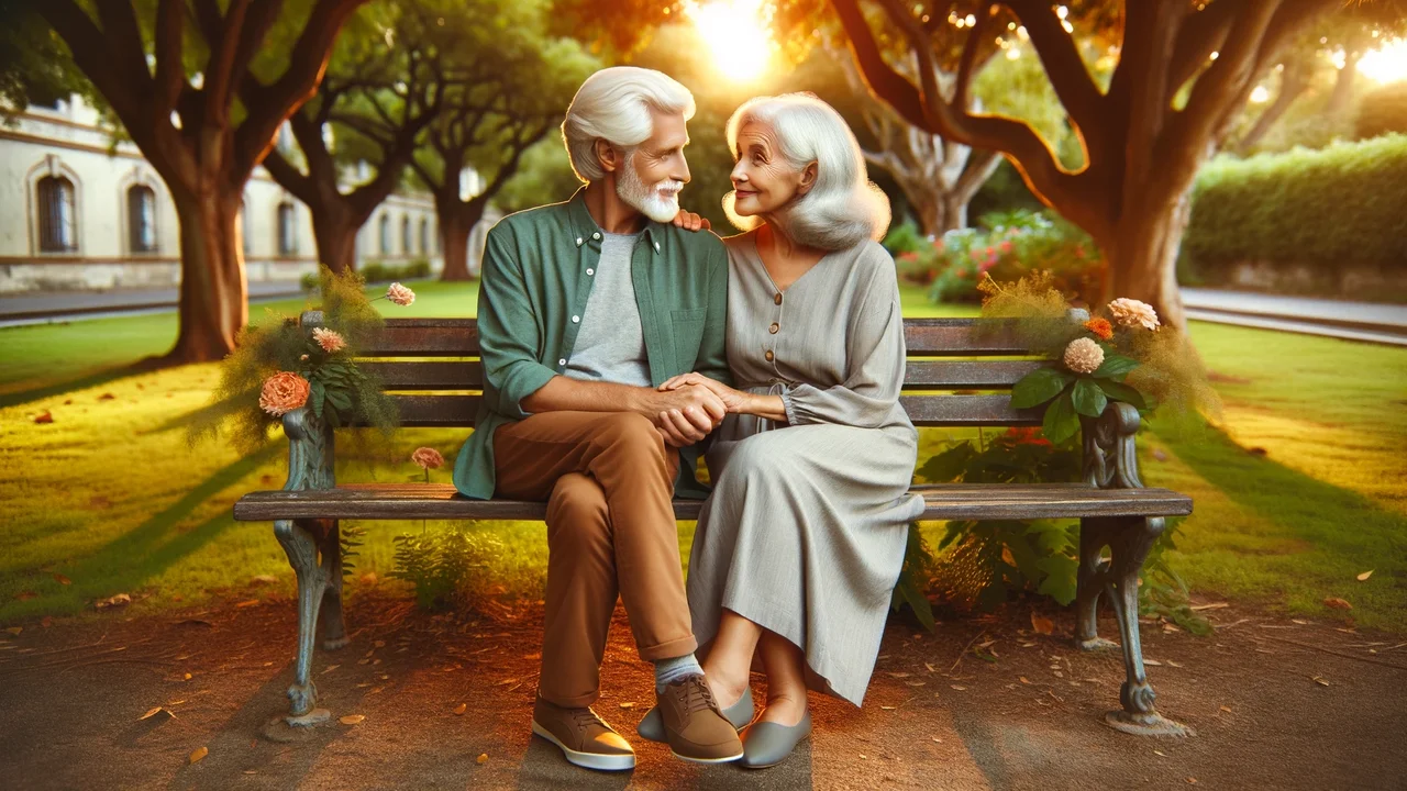 As I strolled around the park, taking in the pleasant rays of the sun and the delicious aroma of newly budding flowers, I caught sight of an old couple relaxing on a bench. They were holding hands and exchanging intense looks. It was obvious that they had been together for a very long time since their love was so evident.